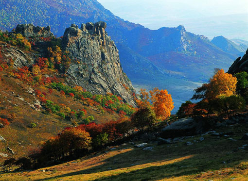大青山的主峰东九峰山位于包头市土默特右旗境内,在着名召庙美岱召的西北方向,地图上的直线距离为十余公里。东九峰山海拔高度为2