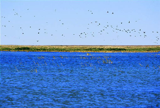 乌兰泡位于新巴尔虎右旗阿拉坦额莫勒镇东南65公里处,是闻名于世的“两湖一泡”之一。水泡面积42.5平方公里,湖水清澈,水草茂盛,芦苇飘飞,一望无际。每年春天,有数万只不同种类的水鸟从南方飞临这绝妙的世外桃源安家落户,生儿育女。这时,乌兰泡顿改冬日冷漠萧条的境况而成为一个生机勃勃的鸟的王国。天鹅洁白端庄,丹顶鹤亭亭玉立,而庞大的鸥家族则显得格外忙碌。这时你会听到万鸟演奏的“世界名曲”,忽而悠扬欢快,忽而情意绵绵,随着婉转动听的音乐,你会看到千百只鸟聚在一起,群起群落在草原上翩翩起舞。秋天一到,鸟群换罢羽毛,便带着儿女飞回温暖的南方越冬。该区有鸟类190多种,其中有我国一级保护珍禽9种;二级保护鸟类35种,是国家珍禽鸟类繁殖科研基地和湿地生态研究基地之一,也是我区主要的观鸟旅游景点。为旅游观光者亲身体验大自然、拥抱大自然的绝佳选择。