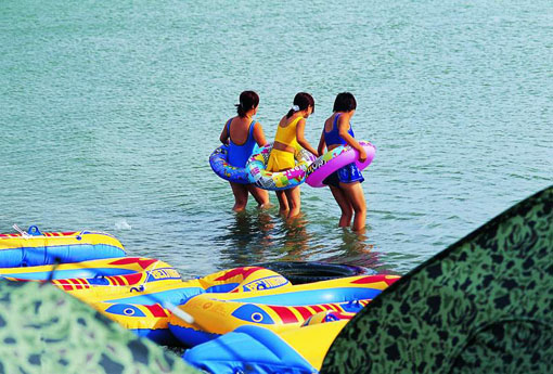 “金海岸”位于呼伦湖西岸,距新巴尔虎右旗所在地阿拉坦额莫勒镇10公里,距满洲里市92公里,景区有长达8公里的天然沙滩,是着名的海滨浴场。多年来,她以海水、沙滩、草原独特的景致吸引着众多的游客,每年6~9月,有大批的旅游者前来观光游览,是内地游客度假避暑和当地人们郊游的最佳去处。