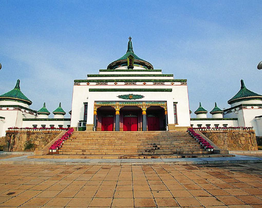 成吉思汗庙坐落于乌兰浩特市城北的罕山之巅,是当今世界上纪念成吉思汗的唯一寺庙。