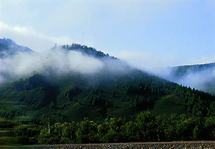 神山,作为扎赉特旗的象征以她高大峻伟闻名遐迩。站在远处遥望神山,云岭苍茫,如巨龙腾空。近看怪石嶙峋,峰险谷深。巍巍神山,嵯峨险峻,令人咂舌。阴雨天云缠雾绕,难辨其真面目。晴朗天亦轻烟漫漫,如细纱裹体,给人以神奇迷离之感。神山,可能是因人们的神奇传说加上这种神秘而得名的吧。