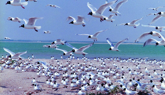 遗鸥的样子很独特,保护区当地的老乡们非常喜欢这种鸟,它憨态可掬,白身灰翅,黑黑的头上衬着半圆的眼圈,俨然“沉思”状,如果发现人对它心存善意,即便你走近时它也不飞走。在很多人眼里,遗鸥还是一种很神秘的鸟,每年的3、4月,它们不知从何处陆续返回春寒陡峭的鄂尔多斯高原繁殖地,开始掘坑营巢,作“生儿育女”的准备,等到雏鸟出壳后,它们就分散在鄂尔多斯高原的湖泊和湿地里生活。遗鸥喜欢群居,并组成稳固的家庭,以湖中的泥鳅、小鱼和岸边的蚊虫为食,悠闲地度过夏季,及至秋凉时节则又行色匆匆,带领长大的幼鸟向南飞往远方。至目前为止,遗鸥的越冬地到底在哪里,一直是国际鸟类学界解不开的疑团。