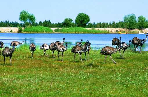 - 从包头出发,过黄河古渡口和昭君坟,沿专线公路南行70公里,便到了沙漠中的海市蜃楼—恩格贝公园。恩格贝创造了一个艺术地对立统一模式:黄色的沙漠中,一片绿树舒枝展叶;干涸的沙丘间,一汪湖水碧如明镜;人迹少见之地,如今鸵鸟起舞,孔雀朝阳。它位于鄂尔多斯市库布其大漠腹地,距达拉特旗文化古迹昭君坟约15公里。恩格贝为蒙古语,汉译为“平安、吉祥”之意。恩格贝开发利用于1989年。开发总面积达30万亩,整个开发区种树种草3万亩,其中,果树、花圃、名贵药材等1 200多亩。植被覆盖率达85%以上。区内饲养动物10余种1万头(只),其中,有珍贵的中华绒山羊3 000余只,鸭、鹅6 000余只,驼鸟100余只,孔雀100余只。有大型水库3座,各种人工小湖10余处,蓄水量达400余万立方米,还开发出了矿泉水,有月亮湖、飞来湖、天外石等资源、景观。