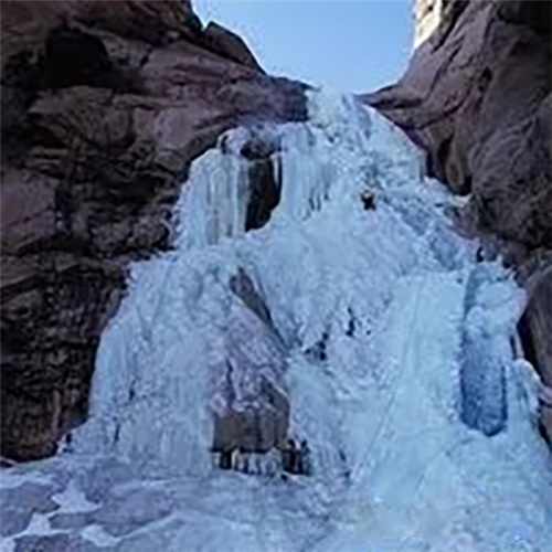 居于石瀑图沟顶端,从悬岩处突兀落下飞天瀑布,高66米,宽6米余,终年不断,夏秋如帘,冬成冰瀑