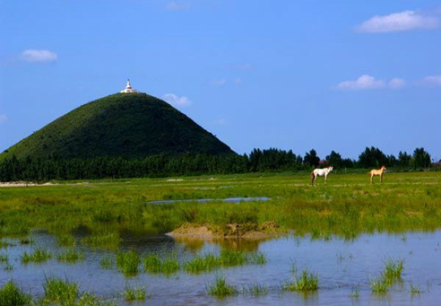 双合尔山白塔,位于在通辽市科尔沁左翼后旗阿古拉苏木的双合尔山上,建于清雍正十二年(1734年),是自治区重点保护文物。