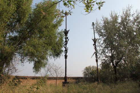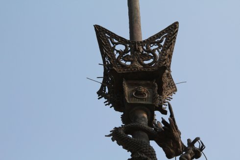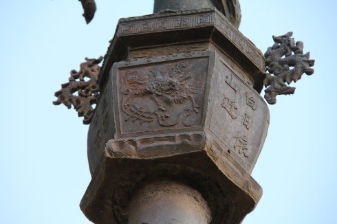 铸铁蟠龙旗杆亦称“幡杆”。位于呼和浩特市托克托县河口村头道街北端原龙王庙门前。龙王庙建于清咸丰年间,旗杆铸于清同治元年(1862)。龙王庙早年被拆毁,现已无存,该庙旗杆虽历经沧桑,仍耸立原庙址处。现为内蒙古自治区重点文物保护单位。