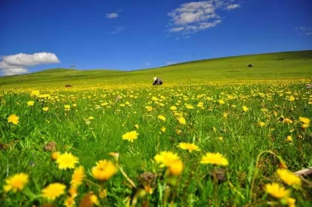 盛夏时节,湛蓝高空下无边的草原上,金莲花遍地盈野,热烈地喷吐着芬芳,流溢着金辉,在显示这片土地的高贵与神秘。这就是驰名中外、享誉古今的金莲川草原。