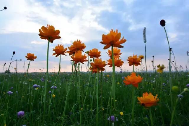 除金莲花外,这里还生长着雪绒花、西伯利亚蓼、蒙古石竹、野罂粟、粉报春、二色补血草、画眉草和蒲公英等各色野生花草,故金莲川又被称为“七彩”草原。
