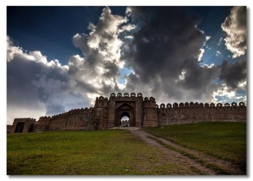 影视城主要由四处仿古建筑组成,依山傍水邻松柏,绵延10余公里,总建筑面积13 800余平方米。坐落于大青山麓北水泉村南的城堡区,由城墙、城门、墙堡、塔楼组成,从东向西分三层三段,为不闭合式仿西亚古城风格的建筑。该城堡区南与闻名世界的大窑文化遗址隔110国道相望,显得格外苍桑雄劲,由此顺沟而入,过古峰火台,跨秦汉时期赵长城,即见到影视城的又一仿古建筑——雄踞于两峰之间的仿居庸关城门。雄居海拔2000余米圣水梁上的仿古城堡,因沿山脊顺势而建,蜿蜒磅礴别有一番神韵。距圣水梁城堡约2公里的山顶上,建有一座穹庐顶蒙古包式的金顶大帐,它背靠蒙古族祭典和取圣水的敖包,俯视弯延逶迤多姿的阴山群峰雄姿,远眺山北草原的广袤柔美。此乃电视剧中成吉思汗统一蒙古各部落后称汗的所在地。