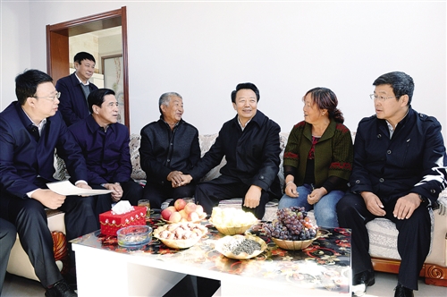 10月10日,自治区党委书记王君、自治区主席巴特尔率领自治区巡回观摩检查组来到包头市土右旗明沙淖乡贺成泉村,入户了解“十个全覆盖”给村民生产生活带来的巨大变化。 记者 袁永红 摄