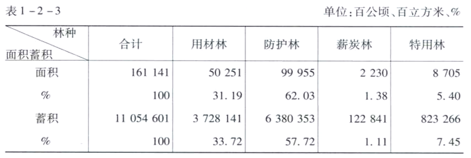森林各林种面积蓄积统计表