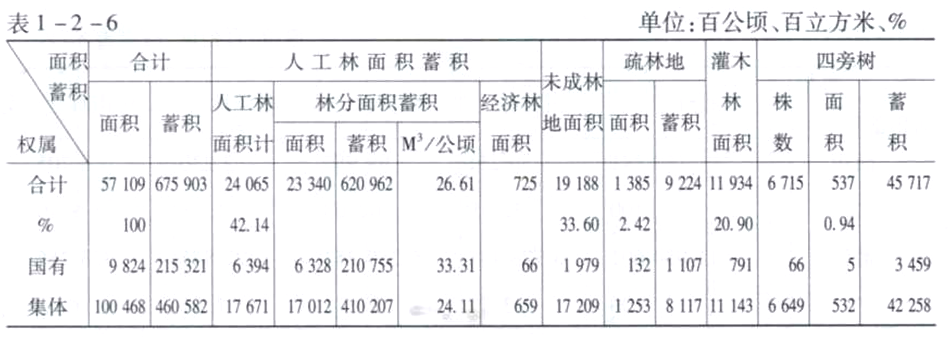 表1-2-2 单位:百公顷、百立方米、%
