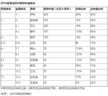 近日,胡润研究院发布了《2016胡润品牌榜》,共200个最具价值中国品牌上榜。伊利在食品饮料行业所有上榜品牌中以420亿元(人民币)的品牌价值排名第一,品牌价值上升24%。就在几个月前,在2016年度BrandZ™中国最具价值品牌100强榜单中,伊利集团以62.35亿美元的品牌价值,蝉联食品类排行榜第一,品牌价值和去年同期相比提升了22%。