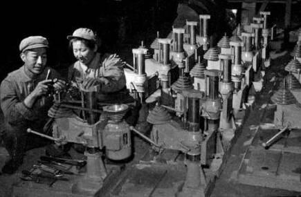 1973年4月,土默特左旗农牧业机械修造厂工人在安装小台钻