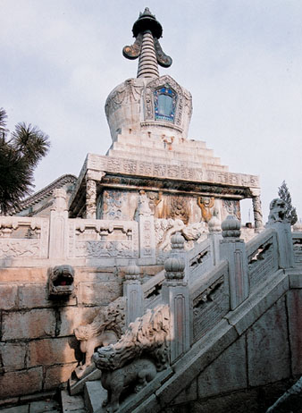 在塔刹的伞盖上,挂有12只镀金的风铃,小巧玲珑,随风而鸣。鎏金的日、月、伞盖和耳饰,配以洁白的塔身和彩色的描绘,使得整个白塔更加精美绝伦。整个佛塔既有南方宝塔玲珑秀丽的感觉,又不失北方宝塔雄浑庄严的气魄。是内蒙古地区覆钵式喇嘛塔中最大和最精美的一座。