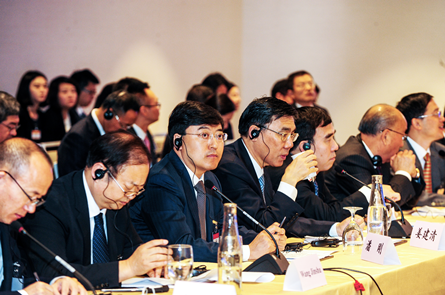 图二:伊利集团董事长潘刚(左三)参加中美企业家座谈会