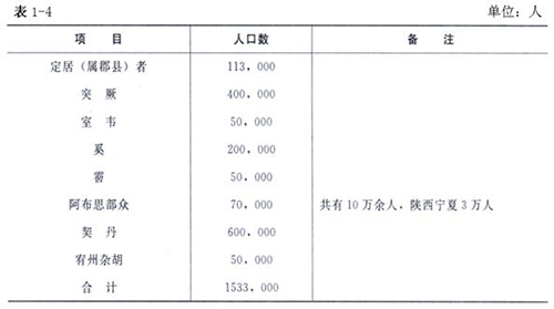 魏晋南北朝大动荡时期,先后有匈奴、乌桓、鲜卑、敕勒等族在内蒙古地区活动,其中一部分逐鹿中原,世称“五胡乱华”。史书对他们的人口数量只有笼统的提法,但估算当时内蒙古地区各族人口也有100万左右。