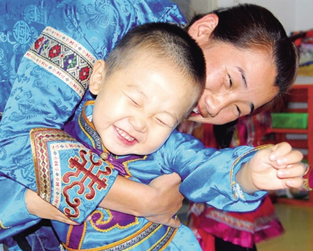 呼和浩特市蒙古族幼儿园的教师和孩子在一起