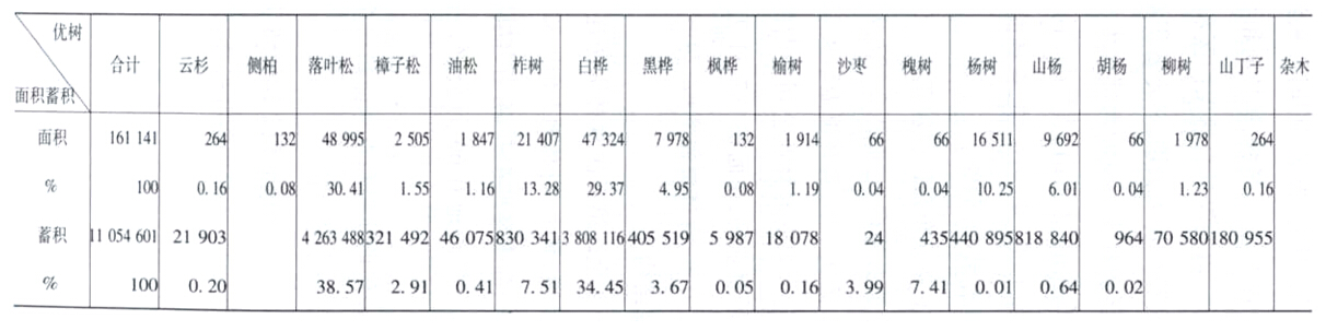 森林面积蓄积分优势树种统计表