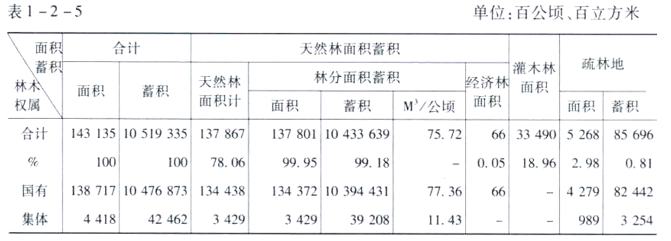 天然林及疏林面积蓄积统计表