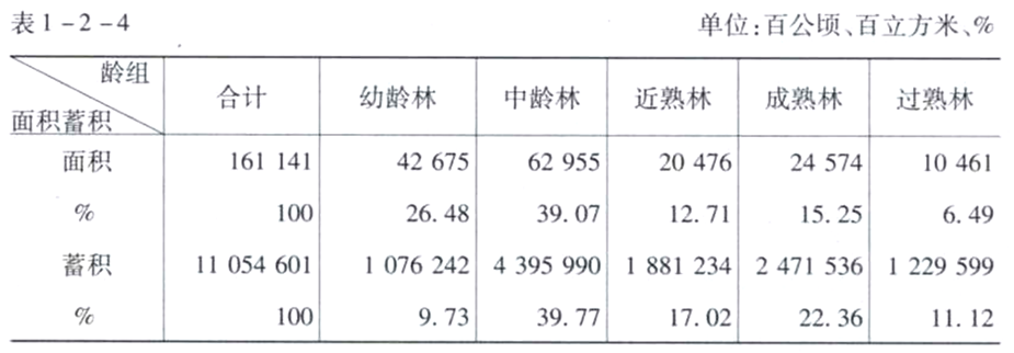 森林各龄组面积蓄积统计表